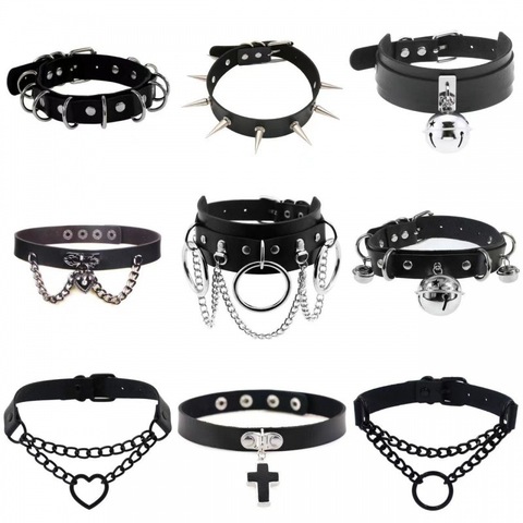 Kilit Punk Rock ayarlanabilir siyah yaka Goth tarzı deri gerdanlık kolye kadınlar için
