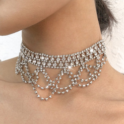 Trendy parti takı gümüş kaplama alaşım elmas kristal damla şekli püskül gerdanlık kolye kadınlar için